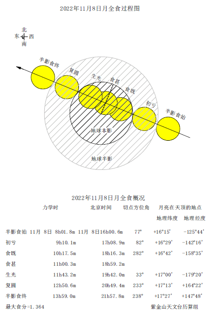2022年11月8日月全食過程和概況圖